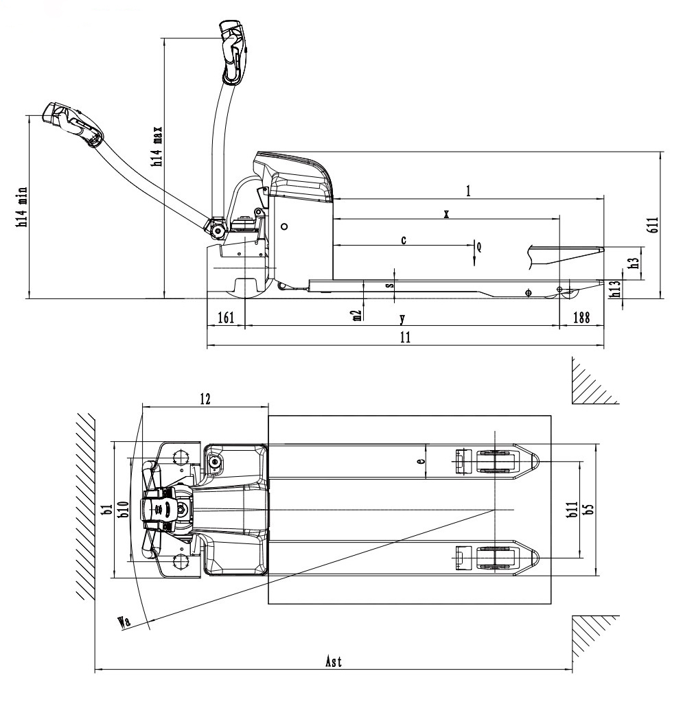 Высота вил после спуска (мм)