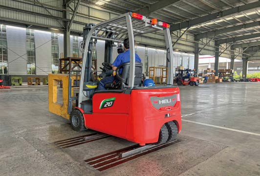 Электрический вилочный погрузчик HELI CPD20SQ-A2LIG3 представляет собой трехопорную грузоподъемную машину, предназначенную для выполнения складских операций в закрытых помещениях и на территориях с ограниченным пространством для маневрирования. Трехопорная конструкция погрузчика включает два передних ведущих колеса и одно заднее опорное колесо. Такая компоновка позволяет эффективно работать в узких складских проходах и выполнять развороты на ограниченной площади.